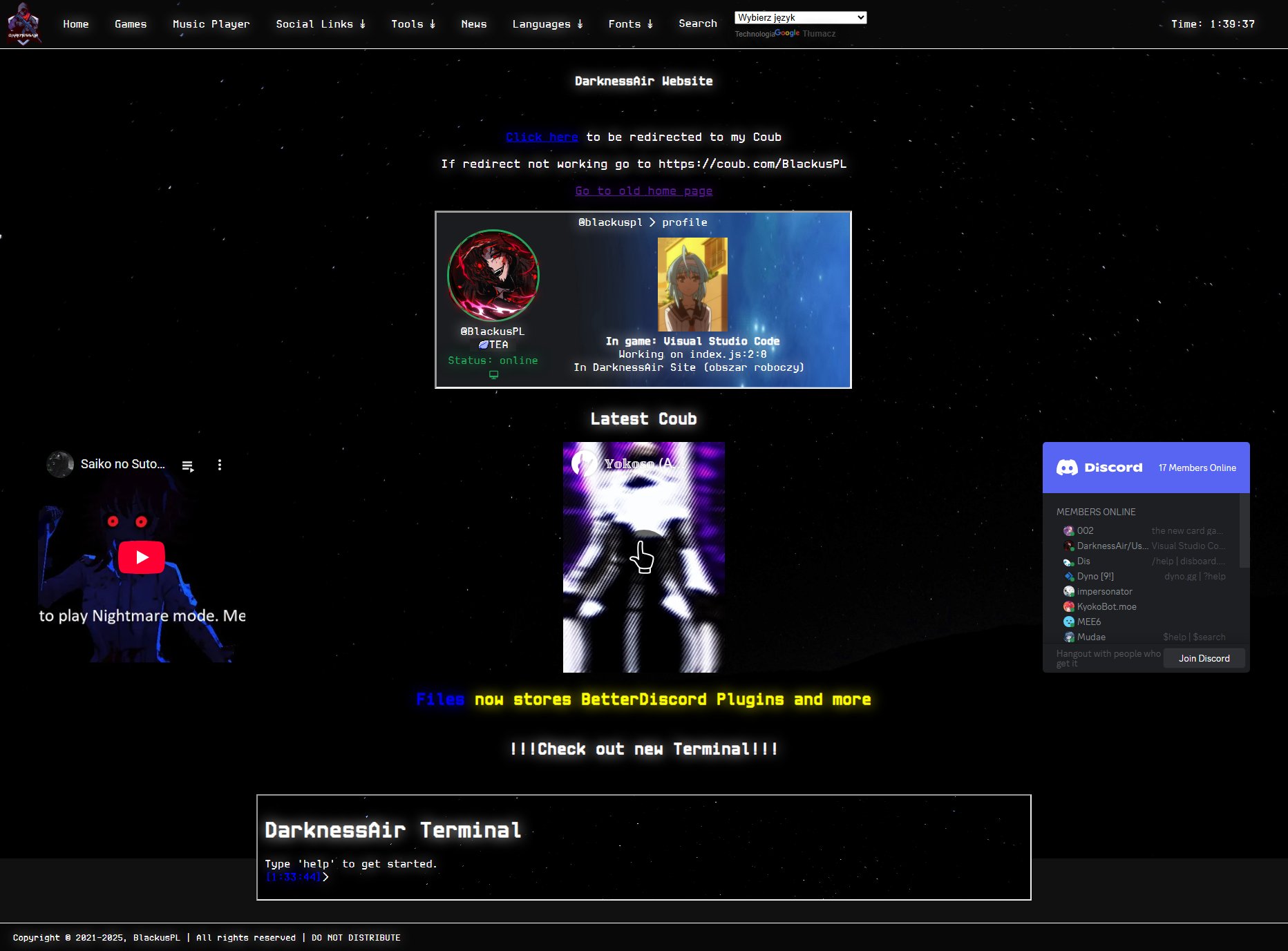 2024 - ImprovementsIn this year I made so many improvements ex. changed navbar to be fully JavaScript or moved all my tools to special category. The biggest one is with News that get huge change in how works. Now translator is on every (maybe) pages so you don't need to learn English anymore. The last thing to do that I said is new custombg window in Music Player.